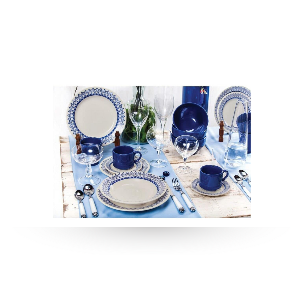 A arte na Grécia Antiga estava ligada à inteligência. As obras eram homenagens aos deuses da mitologia. Mesmo com o realismo presente em muitas esculturas, os gregos também utilizavam traços abstratos em muitas obras. No aparelho de jantar Grécia da Biona, unimos a delicadeza de uma padronagem abstrata com a sobriedade da cor azul. Uma louça delicada e clássica, ideal para composições de mesa mais formais.