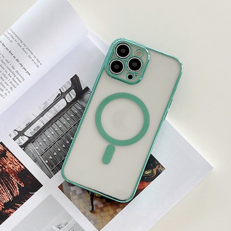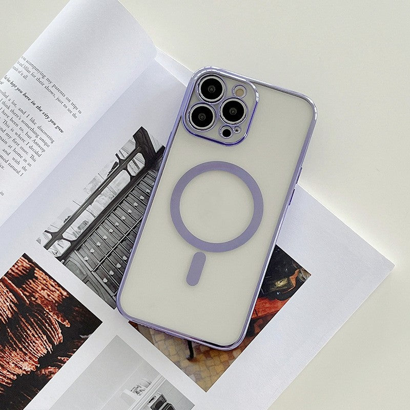 Capa de carregamento magnético para celular com moldura folheada