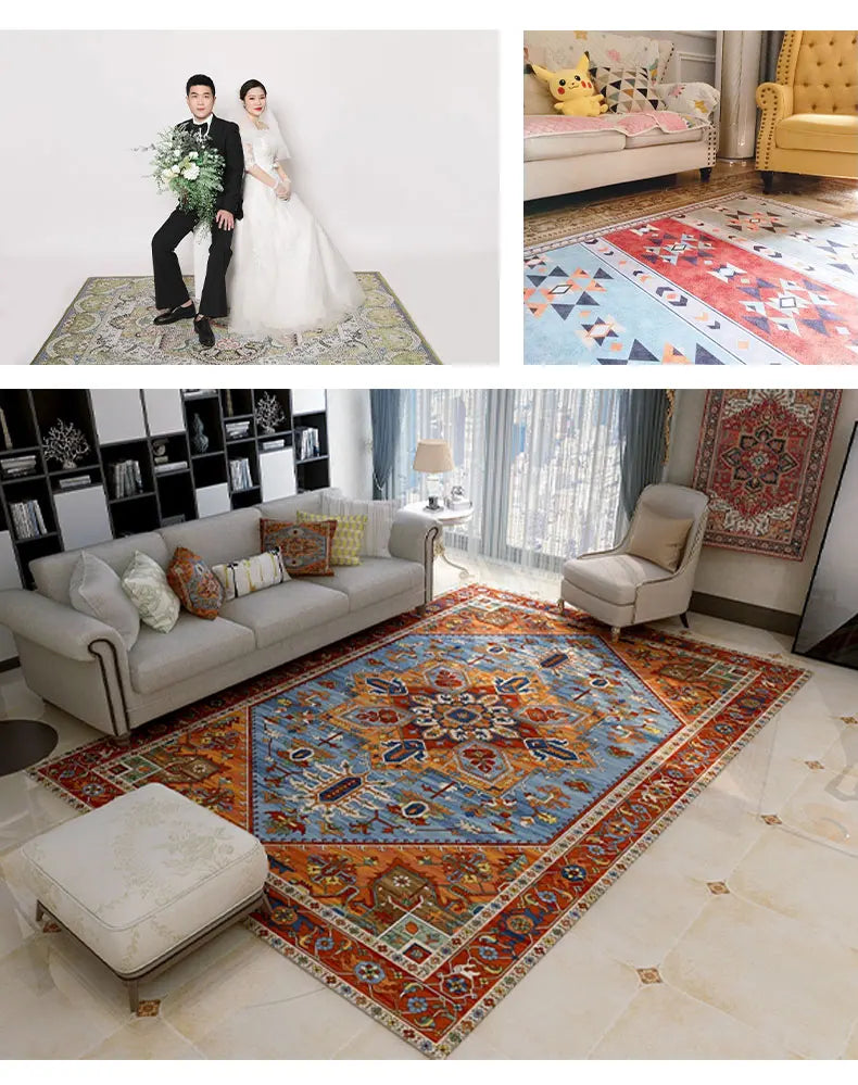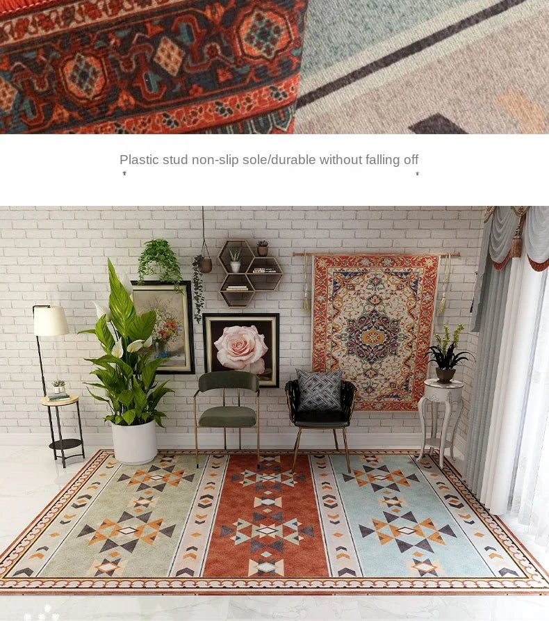 American Retro Living Room Decoration Carpet Minimalist Bedside Rugs for Bedroom Large Area Non-Slip Mat Washable Lounge Rug